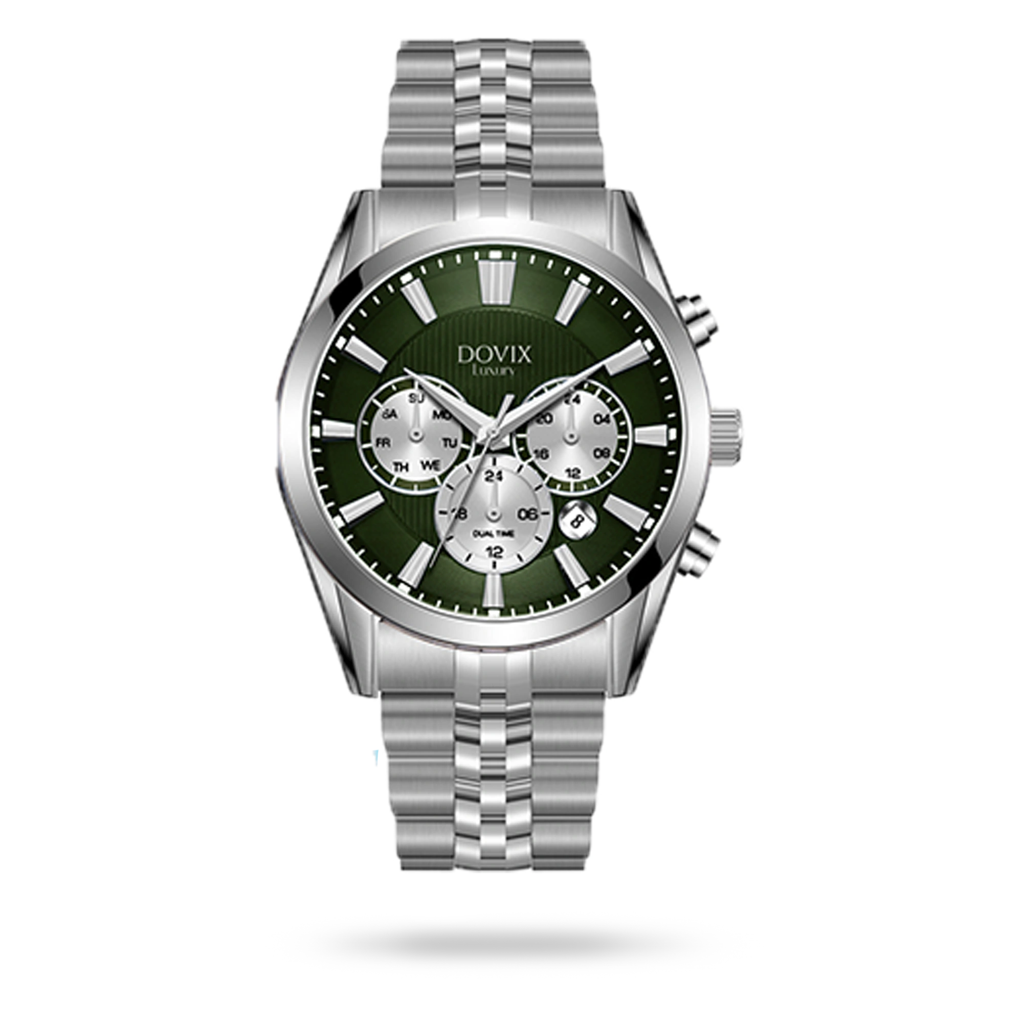ساعت مچی Dovix مردانه ساخت آلمان، با بدنهای به رنگ استیل و بندی به رنگ استیل که جلوهای چشمنواز و خاص ایجاد میکند. صفحه این ساعت به رنگ سبز طراحی شده که هارمونی بینظیری با سایر اجزای ساعت دارد. این مدل در دسته ساعتهای کرنوگراف قرار میگیرد و به صورت تک تولید شده است. برند آلمانی Dovix با استفاده از بهترین متریال و دقت مهندسی مثالزدنی، ساعتی را خلق کرده که نهتنها بیانگر سلیقهای خاص، بلکه همراهی ماندگار برای سالها خواهد بود.