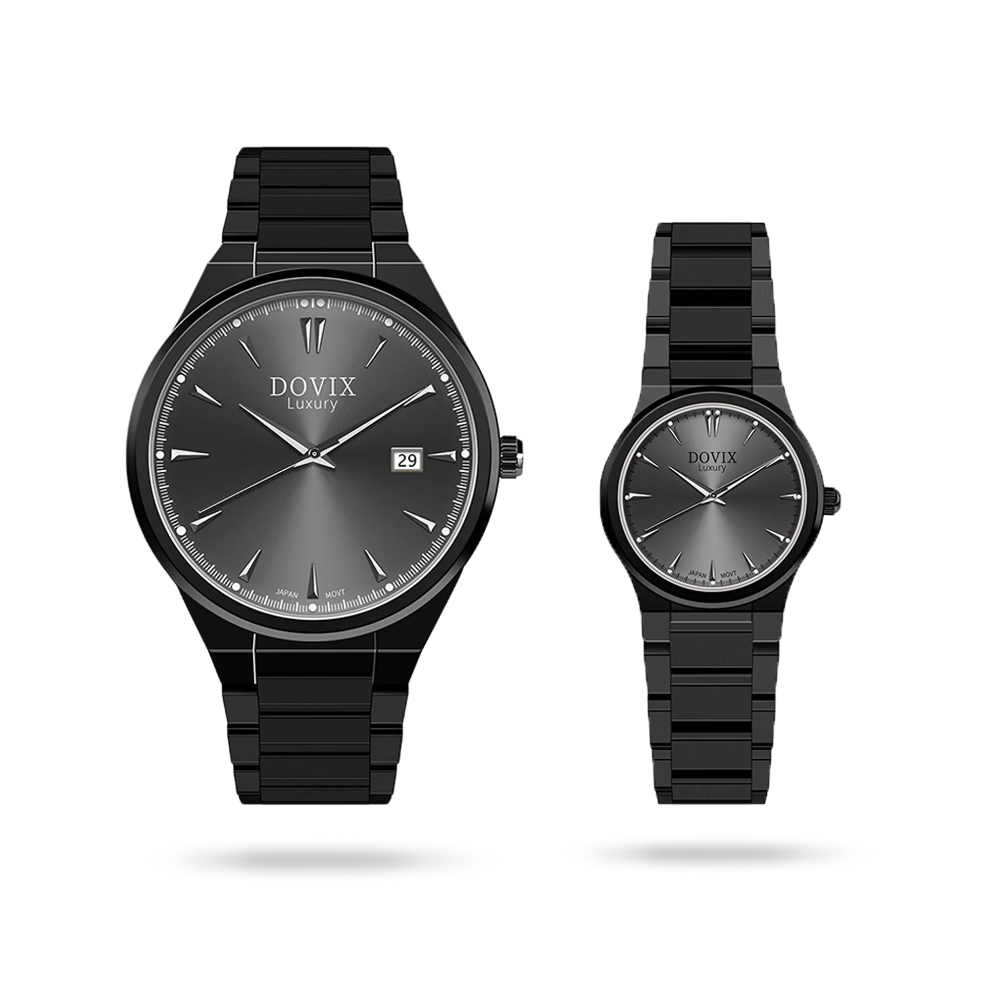 ساعت مچی Dovix ست ساخت آلمان، با بدنهای به رنگ مشکی و بندی به رنگ مشکی که جلوهای چشمنواز و خاص ایجاد میکند. صفحه این ساعت به رنگ طوسی طراحی شده که هارمونی بینظیری با سایر اجزای ساعت دارد. این مدل در دسته ساعتهای کلاسیک قرار میگیرد و به صورت ست تولید شده است. برند آلمانی Dovix با استفاده از بهترین متریال و دقت مهندسی مثالزدنی، ساعتی را خلق کرده که نهتنها بیانگر سلیقهای خاص، بلکه همراهی ماندگار برای سالها خواهد بود.