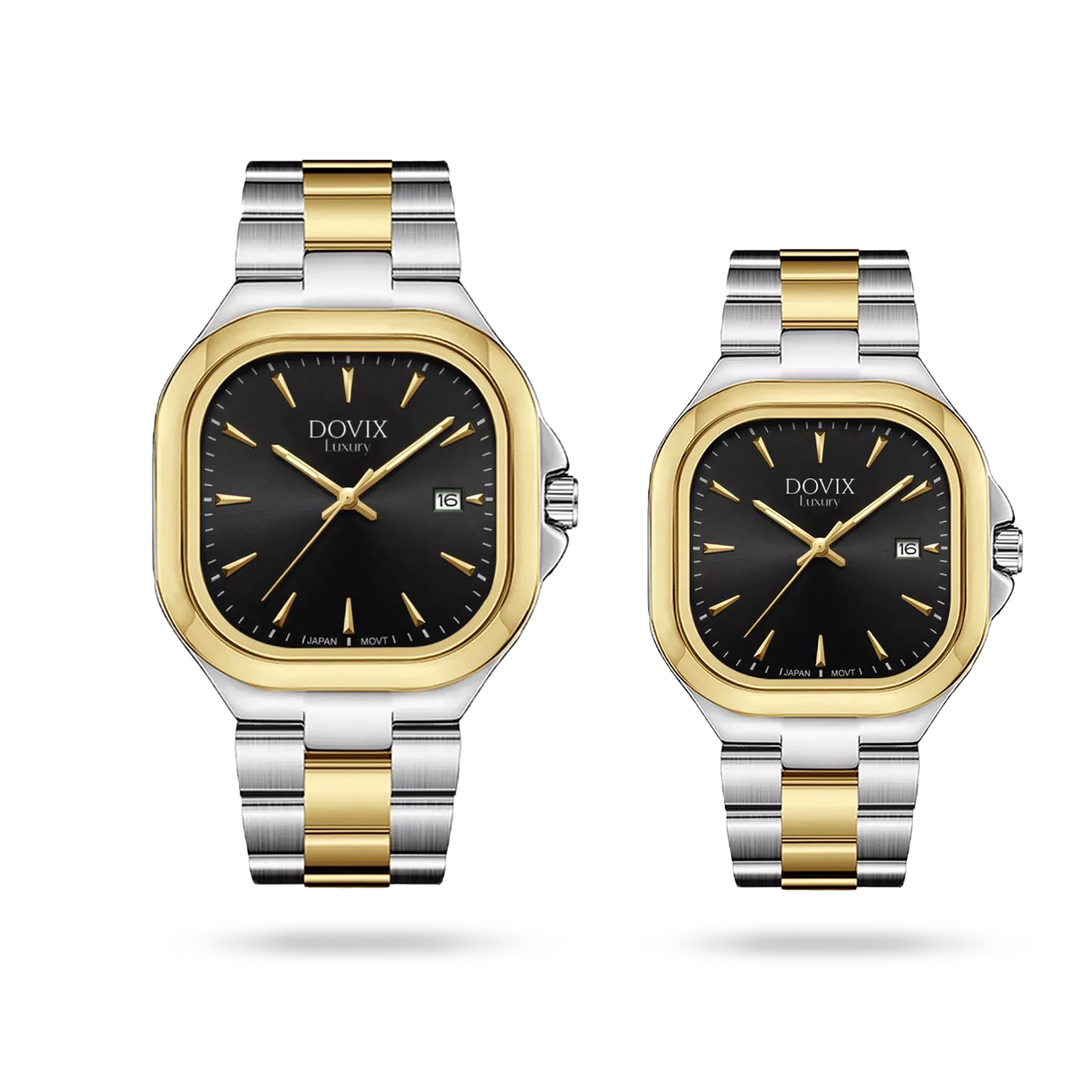 ساعت مچی Dovix ست ساخت آلمان، با بدنهای به رنگ دو رنگ طلایی و بندی به رنگ دو رنگ طلایی که جلوهای چشمنواز و خاص ایجاد میکند. صفحه این ساعت به رنگ مشکی طراحی شده که هارمونی بینظیری با سایر اجزای ساعت دارد. این مدل در دسته ساعتهای تقویم دار قرار میگیرد و به صورت ست تولید شده است. برند آلمانی Dovix با استفاده از بهترین متریال و دقت مهندسی مثالزدنی، ساعتی را خلق کرده که نهتنها بیانگر سلیقهای خاص، بلکه همراهی ماندگار برای سالها خواهد بود.