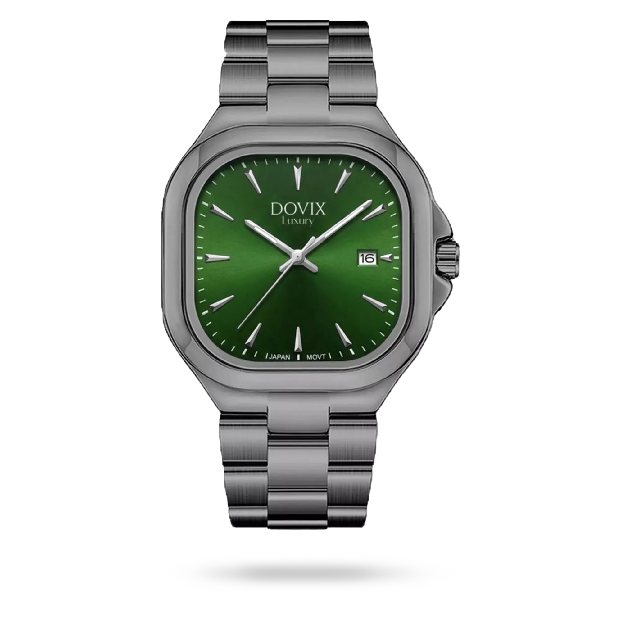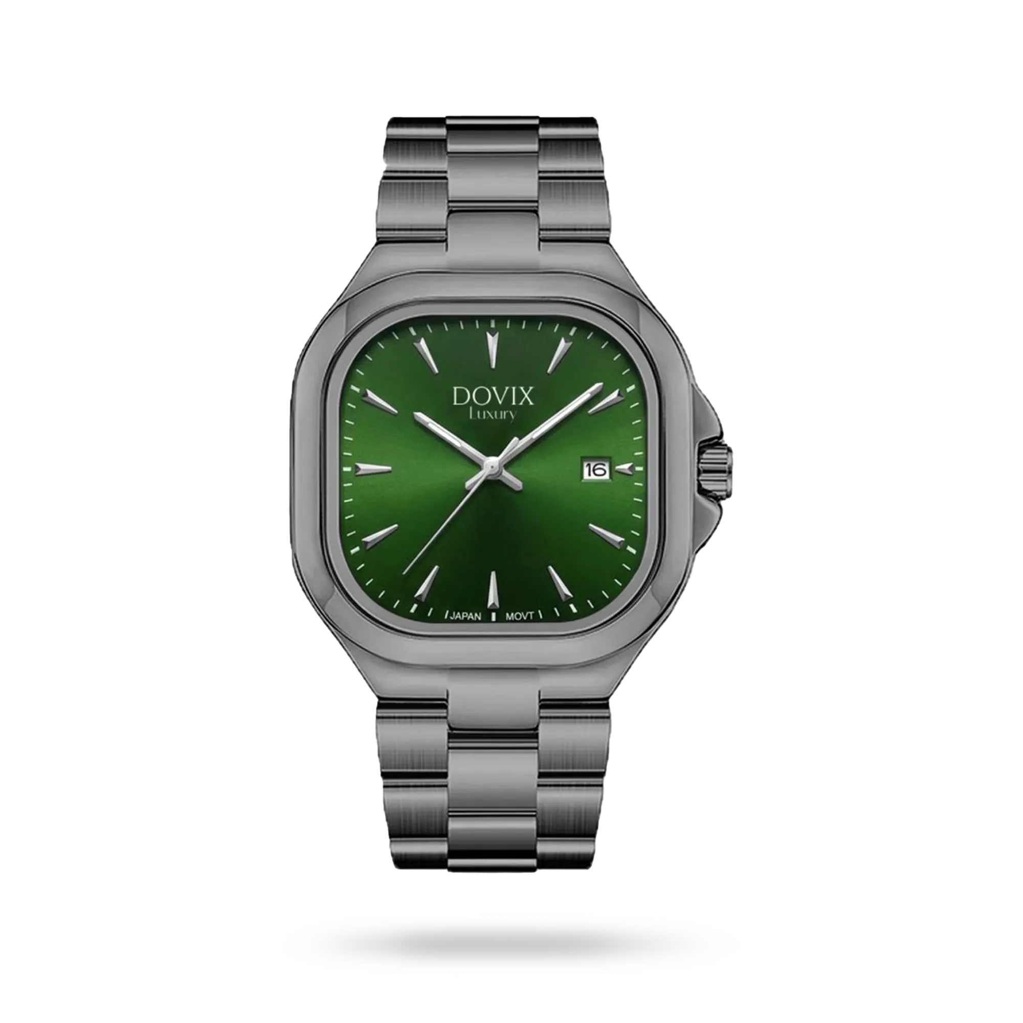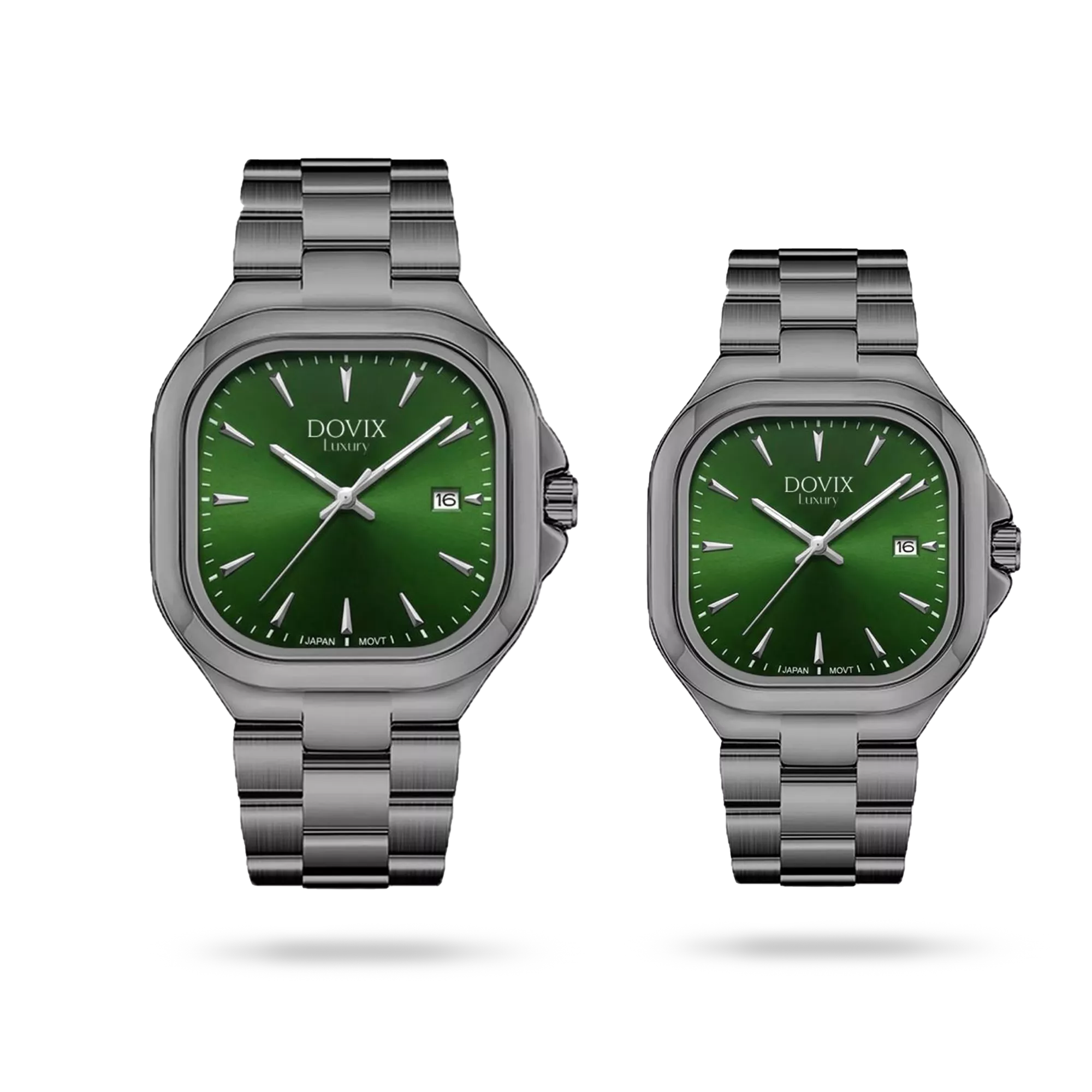 ساعت مچی Dovix ست ساخت آلمان، با بدنه‌ای به رنگ دودی و بندی به رنگ دودی که جلوه‌ای چشم‌نواز و خاص ایجاد می‌کند. صفحه این ساعت به رنگ سبز طراحی شده که هارمونی بی‌نظیری با سایر اجزای ساعت دارد. این مدل در دسته ساعت‌های تقویم دار قرار می‌گیرد و به صورت ست تولید شده است. برند آلمانی Dovix با استفاده از بهترین متریال و دقت مهندسی مثال‌زدنی، ساعتی را خلق کرده که نه‌تنها بیانگر سلیقه‌ای خاص، بلکه همراهی ماندگار برای سال‌ها خواهد بود.