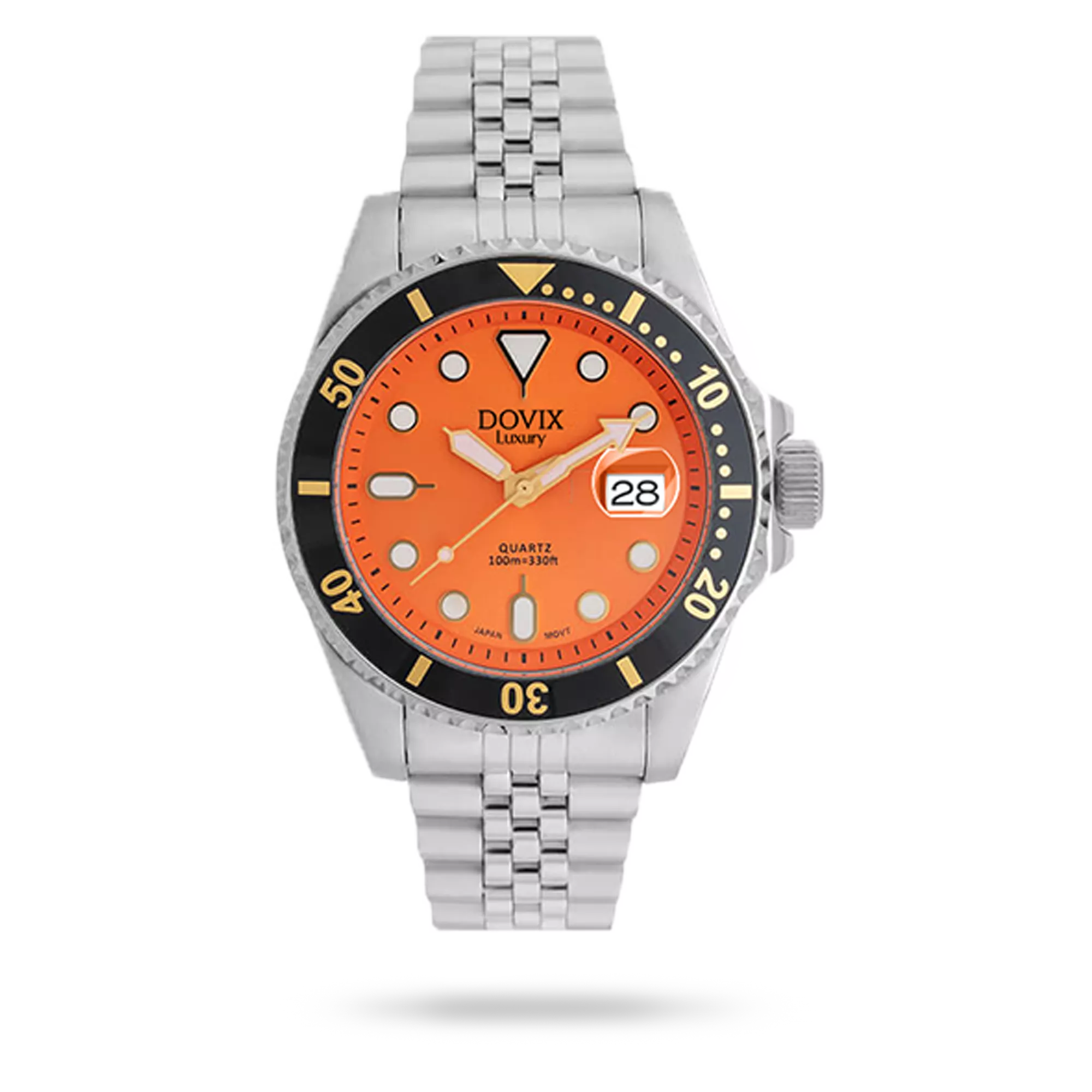 ساعت مچی Dovix مردانه ساخت آلمان، با بدنه‌ای به رنگ سیلور و بندی به رنگ سیلور که جلوه‌ای چشم‌نواز و خاص ایجاد می‌کند. صفحه این ساعت به رنگ نارنجی طراحی شده که هارمونی بی‌نظیری با سایر اجزای ساعت دارد. این مدل در دسته ساعت‌های کلاسیک قرار می‌گیرد و به صورت تک تولید شده است. برند آلمانی Dovix با استفاده از بهترین متریال و دقت مهندسی مثال‌زدنی، ساعتی را خلق کرده که نه‌تنها بیانگر سلیقه‌ای خاص، بلکه همراهی ماندگار برای سال‌ها خواهد بود.