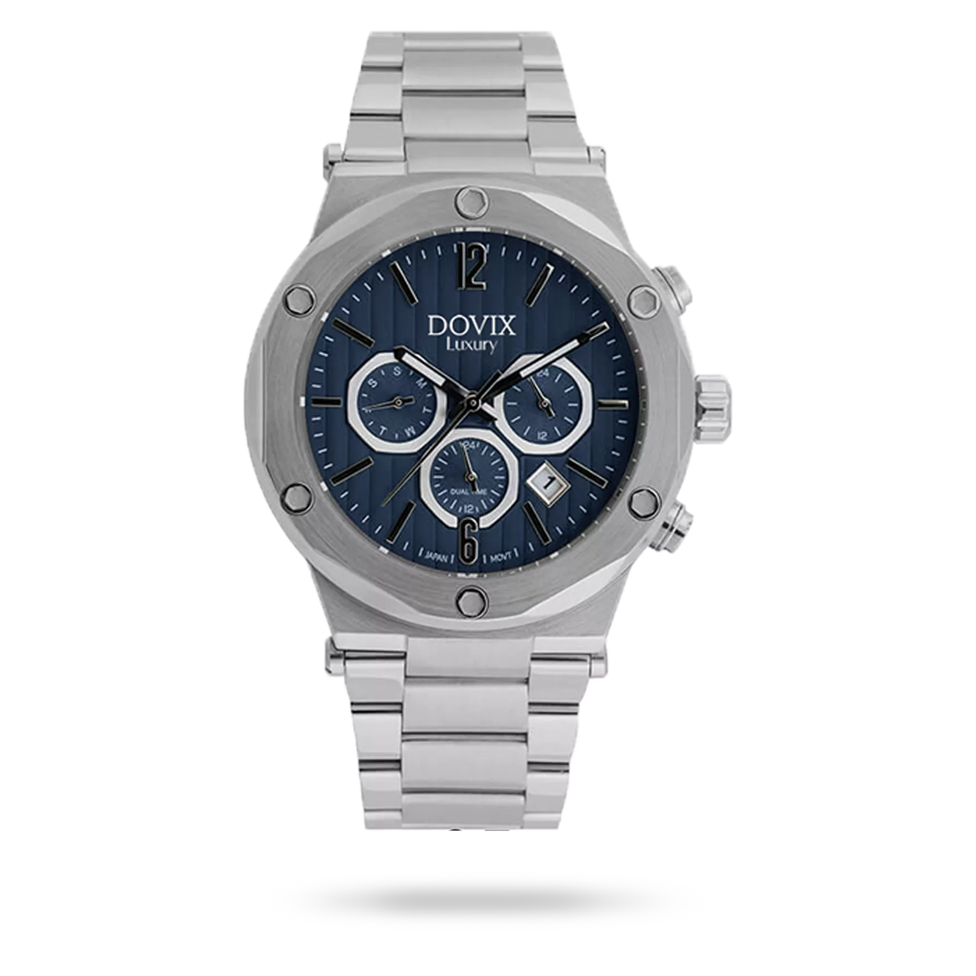 ساعت مچی Dovix مردانه ساخت آلمان، با بدنهای به رنگ سیلور و بندی به رنگ سیلور که جلوهای چشمنواز و خاص ایجاد میکند. صفحه این ساعت به رنگ سرمه ای طراحی شده که هارمونی بینظیری با سایر اجزای ساعت دارد. این مدل در دسته ساعتهای کرنوگراف قرار میگیرد و به صورت تک تولید شده است. برند آلمانی Dovix با استفاده از بهترین متریال و دقت مهندسی مثالزدنی، ساعتی را خلق کرده که نهتنها بیانگر سلیقهای خاص، بلکه همراهی ماندگار برای سالها خواهد بود.
