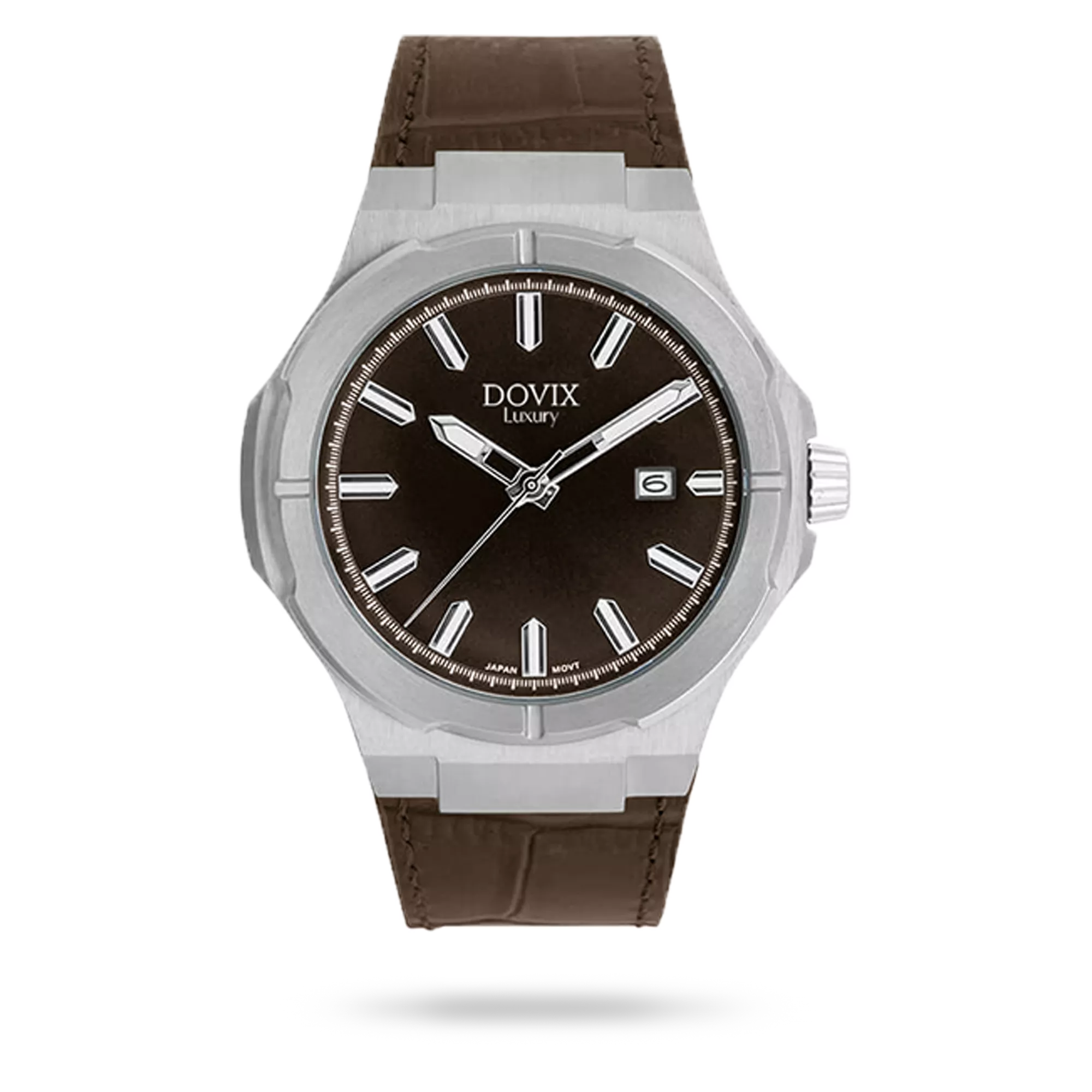 ساعت مچی Dovix مردانه ساخت آلمان، با بدنه‌ای به رنگ سیلور و بندی به رنگ قهوه ای که جلوه‌ای چشم‌نواز و خاص ایجاد می‌کند. صفحه این ساعت به رنگ قهوه ای طراحی شده که هارمونی بی‌نظیری با سایر اجزای ساعت دارد. این مدل در دسته ساعت‌های کلاسیک قرار می‌گیرد و به صورت تک تولید شده است. برند آلمانی Dovix با استفاده از بهترین متریال و دقت مهندسی مثال‌زدنی، ساعتی را خلق کرده که نه‌تنها بیانگر سلیقه‌ای خاص، بلکه همراهی ماندگار برای سال‌ها خواهد بود.
