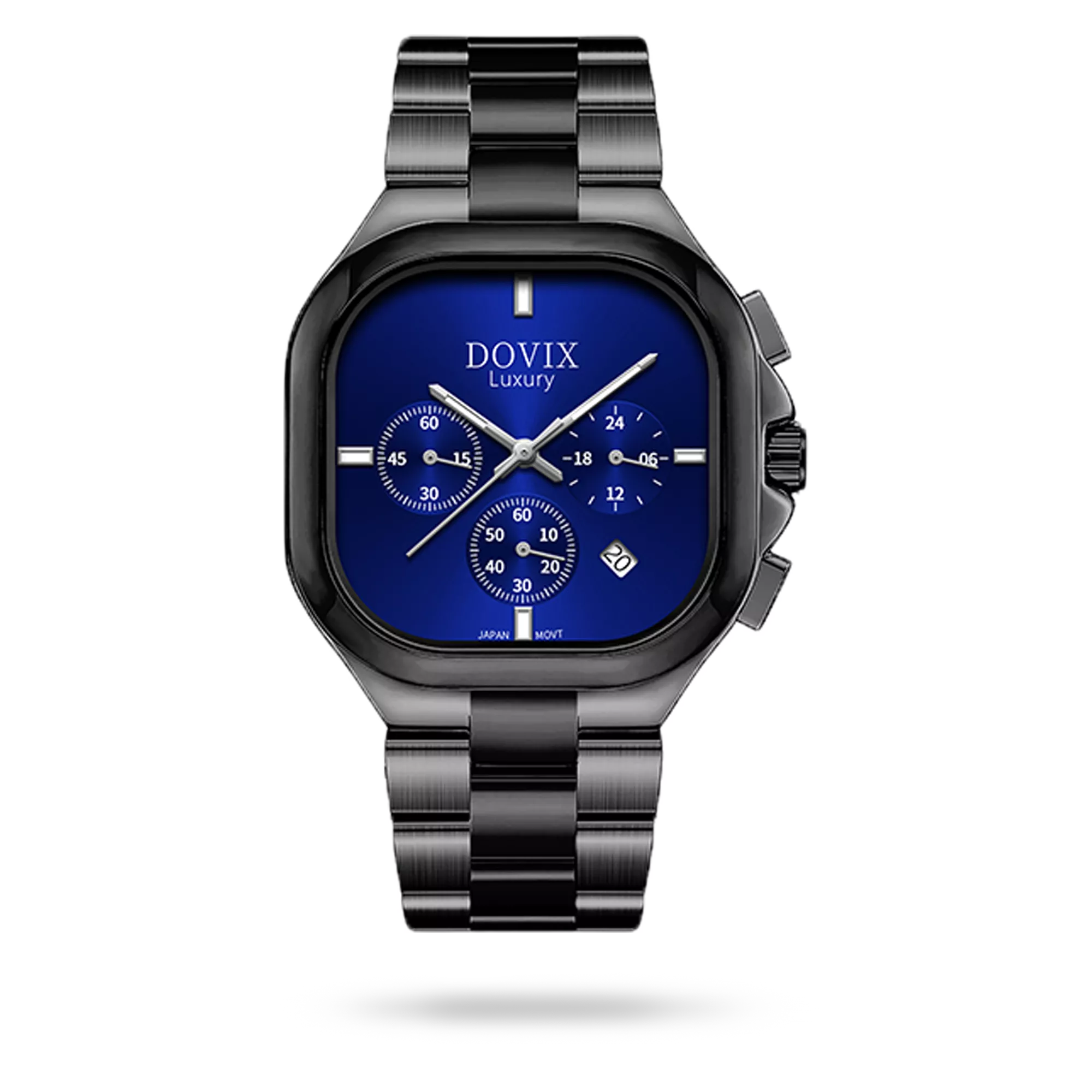 ساعت مچی Dovix مردانه ساخت آلمان، با بدنهای به رنگ مشکی و بندی به رنگ دودی مشکی که جلوهای چشمنواز و خاص ایجاد میکند. صفحه این ساعت به رنگ سرمه ای طراحی شده که هارمونی بینظیری با سایر اجزای ساعت دارد. این مدل در دسته ساعتهای کرنوگراف قرار میگیرد و به صورت تک تولید شده است. برند آلمانی Dovix با استفاده از بهترین متریال و دقت مهندسی مثالزدنی، ساعتی را خلق کرده که نهتنها بیانگر سلیقهای خاص، بلکه همراهی ماندگار برای سالها خواهد بود.
