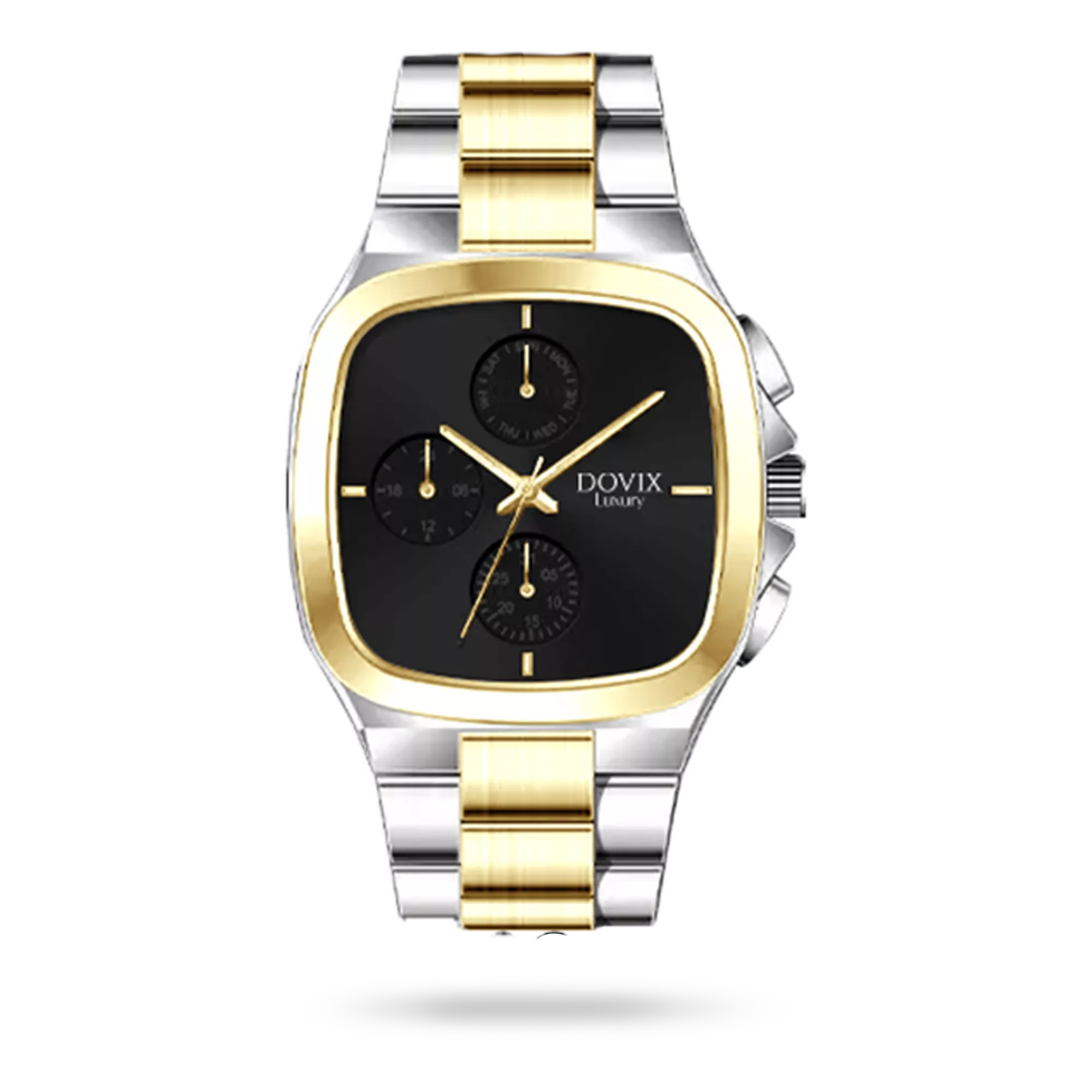 ساعت مچی Dovix مردانه ساخت آلمان، با بدنهای به رنگ دورنگ طلایی و بندی به رنگ دورنگ طلایی که جلوهای چشمنواز و خاص ایجاد میکند. صفحه این ساعت به رنگ مشکی طراحی شده که هارمونی بینظیری با سایر اجزای ساعت دارد. این مدل در دسته ساعتهای کرنوگراف قرار میگیرد و به صورت تک تولید شده است. برند آلمانی Dovix با استفاده از بهترین متریال و دقت مهندسی مثالزدنی، ساعتی را خلق کرده که نهتنها بیانگر سلیقهای خاص، بلکه همراهی ماندگار برای سالها خواهد بود.