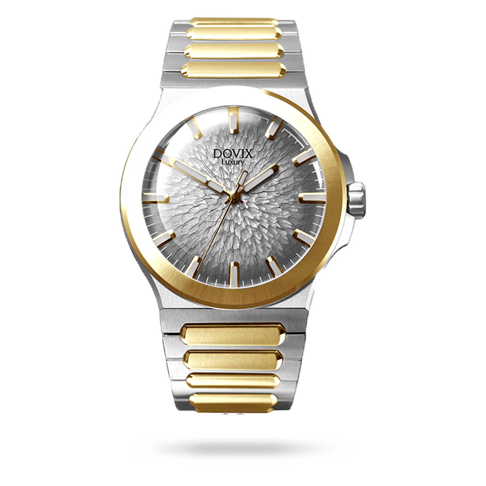 ساعت مچی Dovix مردانه ساخت آلمان، با بدنه‌ای به رنگ دورنگ طلایی و بندی به رنگ دورنگ طلایی که جلوه‌ای چشم‌نواز و خاص ایجاد می‌کند. صفحه این ساعت به رنگ سیلور طراحی شده که هارمونی بی‌نظیری با سایر اجزای ساعت دارد. این مدل در دسته ساعت‌های کلاسیک قرار می‌گیرد و به صورت تک تولید شده است. برند آلمانی Dovix با استفاده از بهترین متریال و دقت مهندسی مثال‌زدنی، ساعتی را خلق کرده که نه‌تنها بیانگر سلیقه‌ای خاص، بلکه همراهی ماندگار برای سال‌ها خواهد بود.
