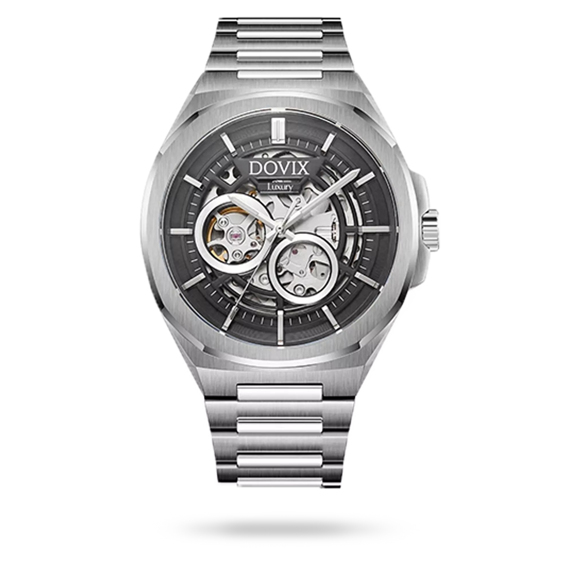 ساعت مچی Dovix مردانه ساخت آلمان، با بدنهای به رنگ سیلور و بندی به رنگ سیلور که جلوهای چشمنواز و خاص ایجاد میکند. صفحه این ساعت به رنگ گان طراحی شده که هارمونی بینظیری با سایر اجزای ساعت دارد. این مدل در دسته ساعتهای اتوماتیک قرار میگیرد و به صورت تک تولید شده است. برند آلمانی Dovix با استفاده از بهترین متریال و دقت مهندسی مثالزدنی، ساعتی را خلق کرده که نهتنها بیانگر سلیقهای خاص، بلکه همراهی ماندگار برای سالها خواهد بود.