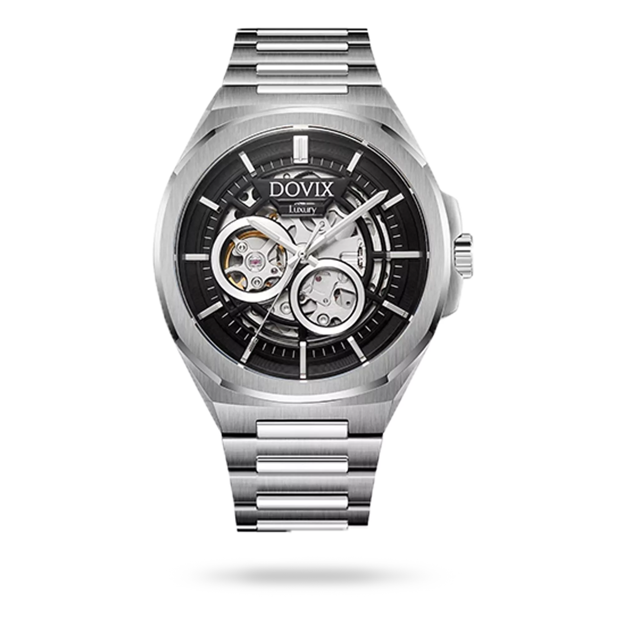 ساعت مچی Dovix مردانه ساخت آلمان، با بدنهای به رنگ سیلور و بندی به رنگ سیلور که جلوهای چشمنواز و خاص ایجاد میکند. صفحه این ساعت به رنگ مشکی طراحی شده که هارمونی بینظیری با سایر اجزای ساعت دارد. این مدل در دسته ساعتهای اتوماتیک قرار میگیرد و به صورت تک تولید شده است. برند آلمانی Dovix با استفاده از بهترین متریال و دقت مهندسی مثالزدنی، ساعتی را خلق کرده که نهتنها بیانگر سلیقهای خاص، بلکه همراهی ماندگار برای سالها خواهد بود.