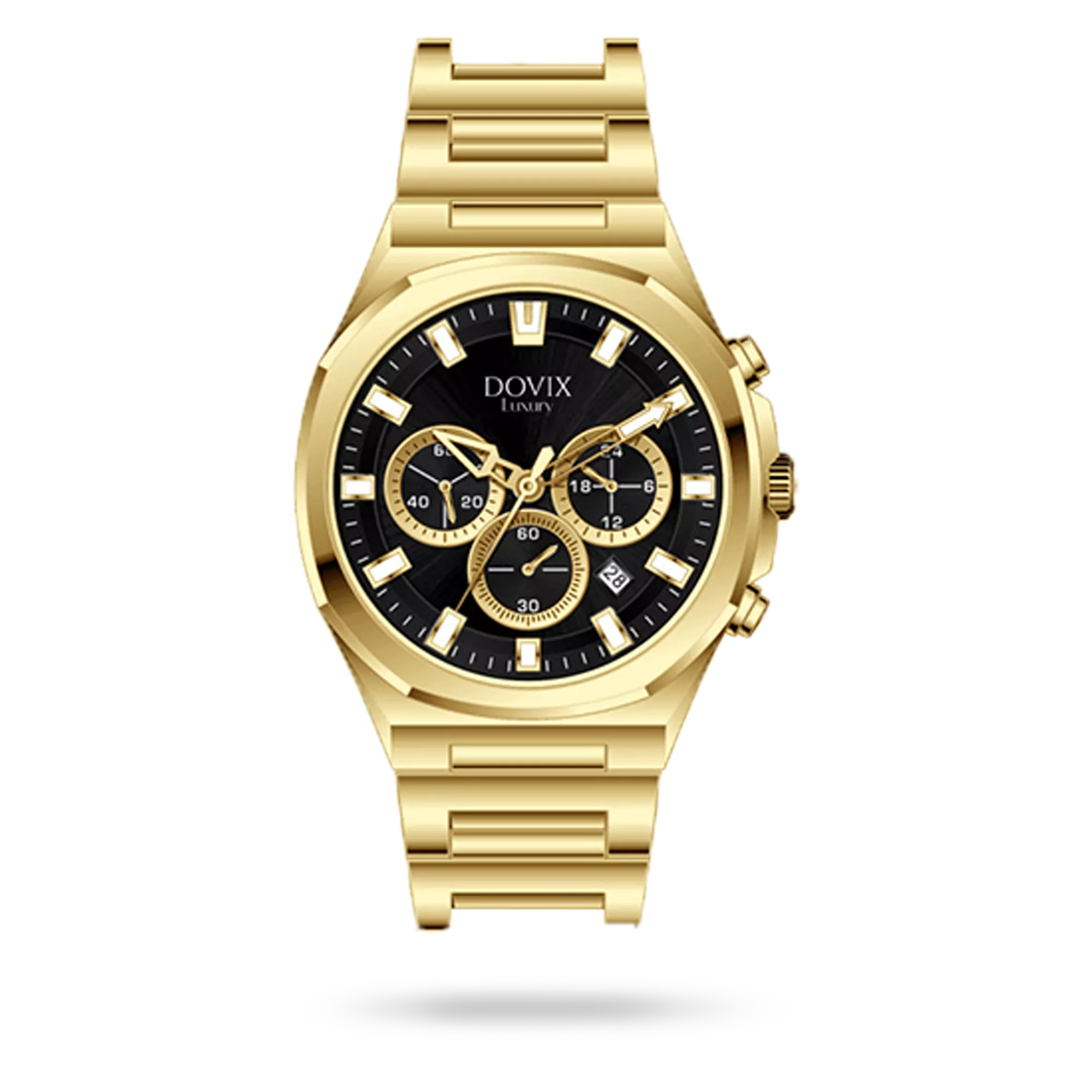 ساعت مچی Dovix مردانه ساخت آلمان، با بدنهای به رنگ طلایی و بندی به رنگ طلایی که جلوهای چشمنواز و خاص ایجاد میکند. صفحه این ساعت به رنگ مشکی طراحی شده که هارمونی بینظیری با سایر اجزای ساعت دارد. این مدل در دسته ساعتهای کرنوگراف قرار میگیرد و به صورت تک تولید شده است. برند آلمانی Dovix با استفاده از بهترین متریال و دقت مهندسی مثالزدنی، ساعتی را خلق کرده که نهتنها بیانگر سلیقهای خاص، بلکه همراهی ماندگار برای سالها خواهد بود.