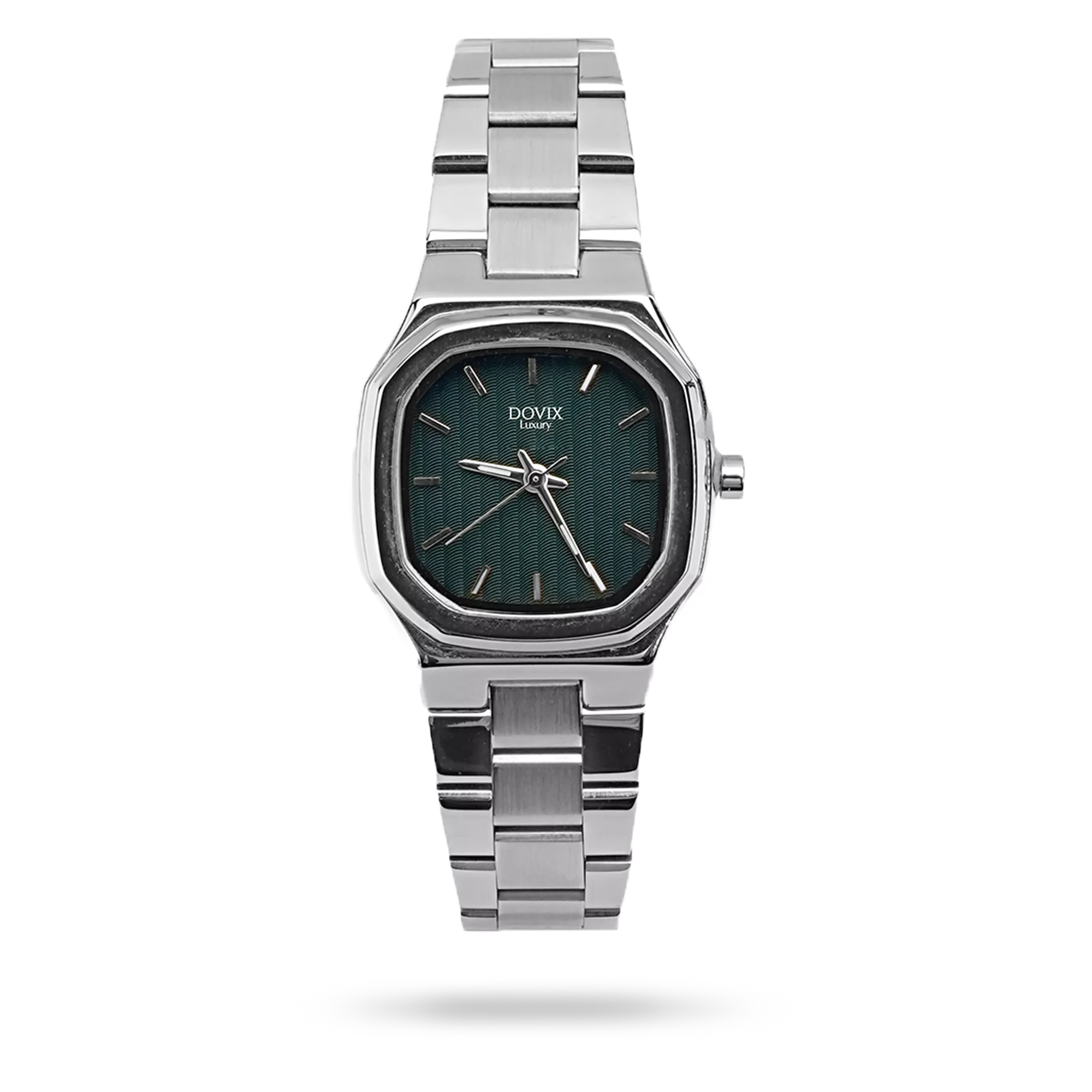 ساعت مچی Dovix زنانه ساخت آلمان، با بدنهای به رنگ سیلور و بندی به رنگ سیلور که جلوهای چشمنواز و خاص ایجاد میکند. صفحه این ساعت به رنگ سبز طراحی شده که هارمونی بینظیری با سایر اجزای ساعت دارد. این مدل در دسته ساعتهای کلاسیک قرار میگیرد و به صورت تک تولید شده است. برند آلمانی Dovix با استفاده از بهترین متریال و دقت مهندسی مثالزدنی، ساعتی را خلق کرده که نهتنها بیانگر سلیقهای خاص، بلکه همراهی ماندگار برای سالها خواهد بود.