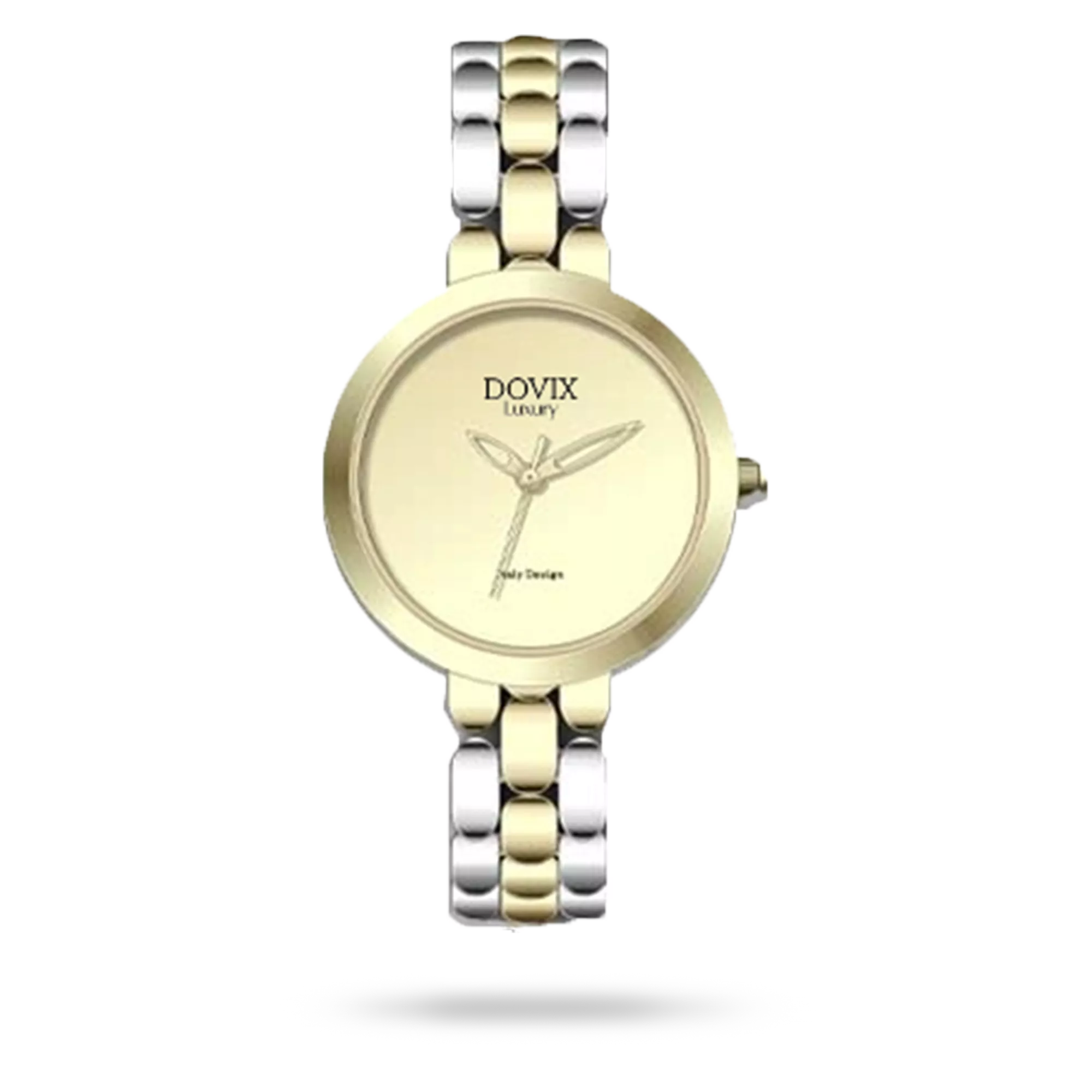 ساعت مچی Dovix زنانه ساخت آلمان، با بدنه‌ای به رنگ دورنگ طلایی و بندی به رنگ دورنگ طلایی که جلوه‌ای چشم‌نواز و خاص ایجاد می‌کند. صفحه این ساعت به رنگ طلایی طراحی شده که هارمونی بی‌نظیری با سایر اجزای ساعت دارد. این مدل در دسته ساعت‌های کلاسیک قرار می‌گیرد و به صورت تک تولید شده است. برند آلمانی Dovix با استفاده از بهترین متریال و دقت مهندسی مثال‌زدنی، ساعتی را خلق کرده که نه‌تنها بیانگر سلیقه‌ای خاص، بلکه همراهی ماندگار برای سال‌ها خواهد بود.