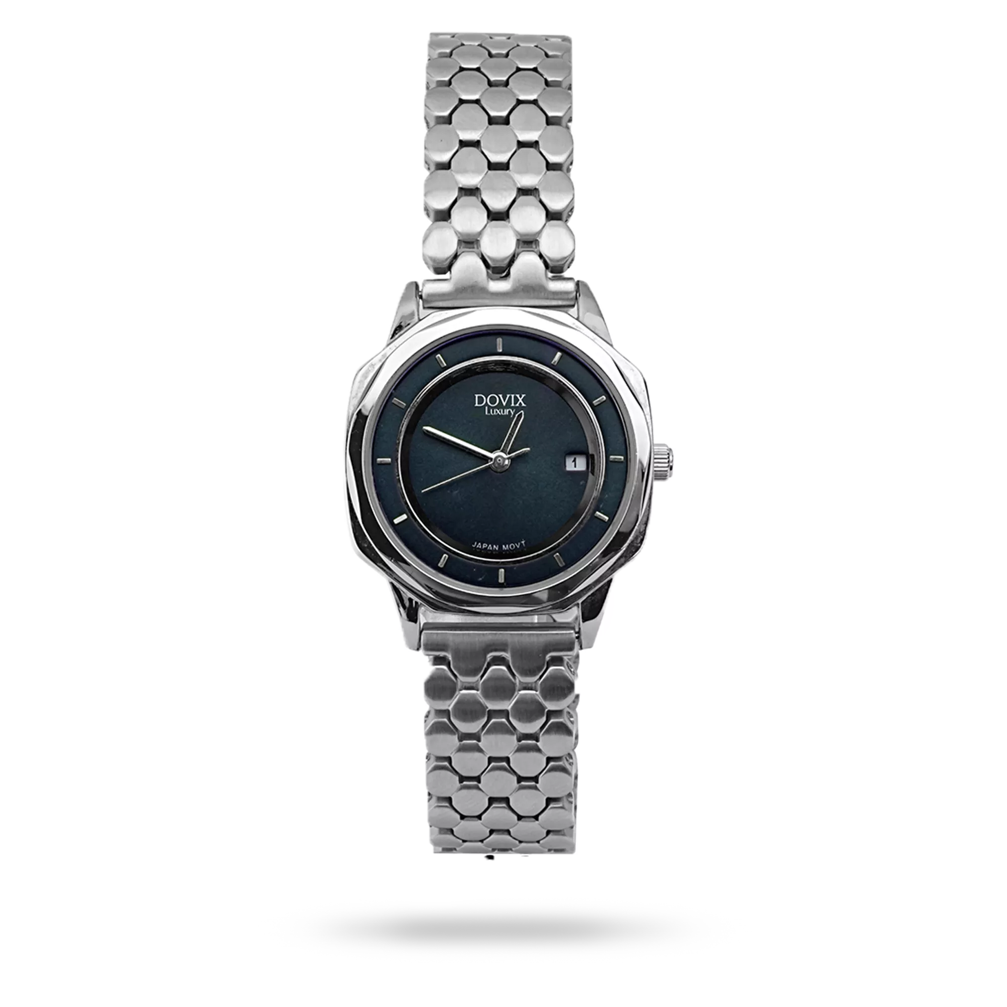 ساعت مچی Dovix زنانه ساخت آلمان، با بدنهای به رنگ سیلور و بندی به رنگ سیلور که جلوهای چشمنواز و خاص ایجاد میکند. صفحه این ساعت به رنگ سرمه ای طراحی شده که هارمونی بینظیری با سایر اجزای ساعت دارد. این مدل در دسته ساعتهای کلاسیک قرار میگیرد و به صورت تک تولید شده است. برند آلمانی Dovix با استفاده از بهترین متریال و دقت مهندسی مثالزدنی، ساعتی را خلق کرده که نهتنها بیانگر سلیقهای خاص، بلکه همراهی ماندگار برای سالها خواهد بود.