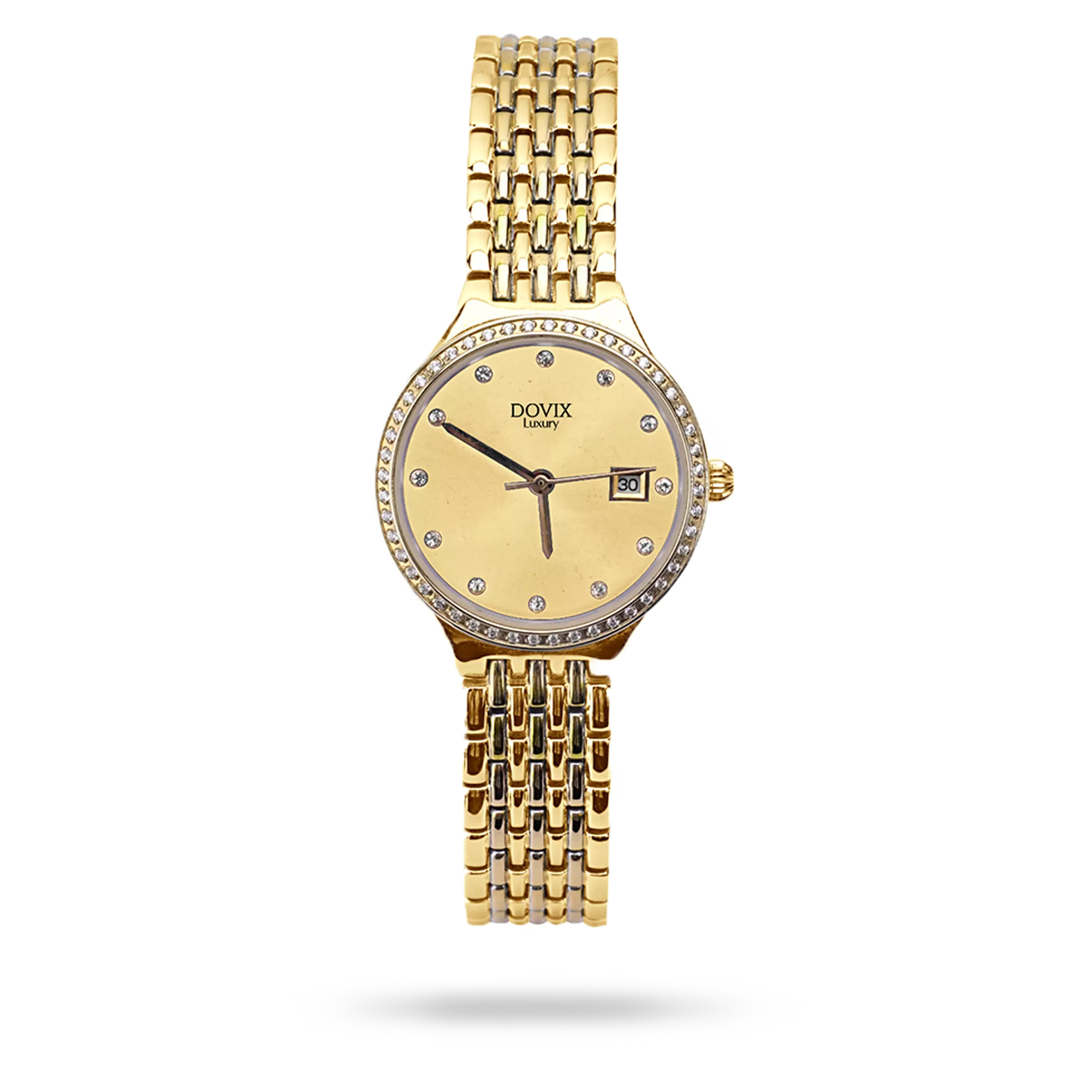 ساعت مچی Dovix زنانه ساخت آلمان، با بدنهای به رنگ طلایی و بندی به رنگ طلایی که جلوهای چشمنواز و خاص ایجاد میکند. صفحه این ساعت به رنگ طلایی طراحی شده که هارمونی بینظیری با سایر اجزای ساعت دارد. این مدل در دسته ساعتهای کلاسیک قرار میگیرد و به صورت تک تولید شده است. برند آلمانی Dovix با استفاده از بهترین متریال و دقت مهندسی مثالزدنی، ساعتی را خلق کرده که نهتنها بیانگر سلیقهای خاص، بلکه همراهی ماندگار برای سالها خواهد بود.
