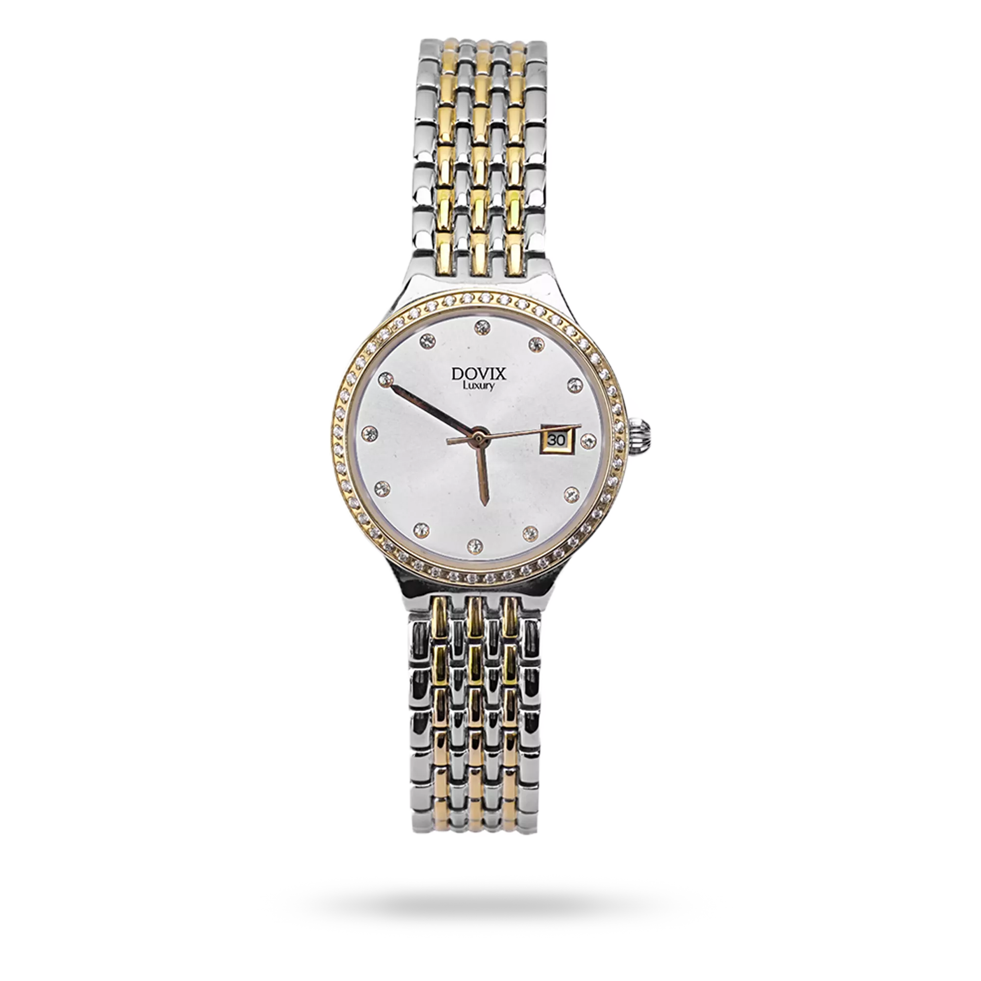 ساعت مچی Dovix زنانه ساخت آلمان، با بدنهای به رنگ دو رنگ طلایی و بندی به رنگ دو رنگ طلایی که جلوهای چشمنواز و خاص ایجاد میکند. صفحه این ساعت به رنگ سیلور طراحی شده که هارمونی بینظیری با سایر اجزای ساعت دارد. این مدل در دسته ساعتهای کلاسیک قرار میگیرد و به صورت تک تولید شده است. برند آلمانی Dovix با استفاده از بهترین متریال و دقت مهندسی مثالزدنی، ساعتی را خلق کرده که نهتنها بیانگر سلیقهای خاص، بلکه همراهی ماندگار برای سالها خواهد بود.